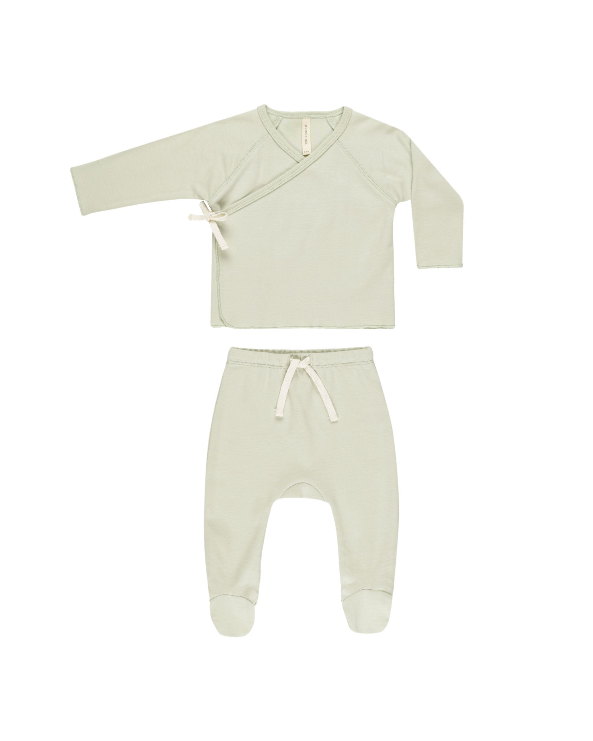 QUINCY MAE Wrap Top + Footed Pant Set - Mint