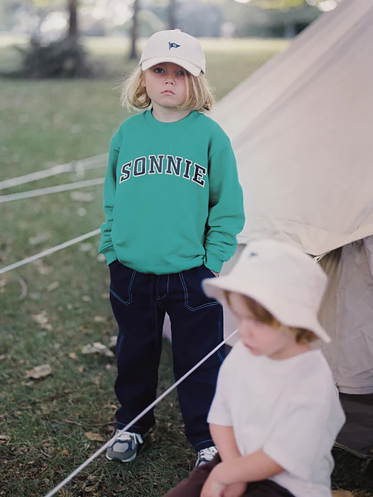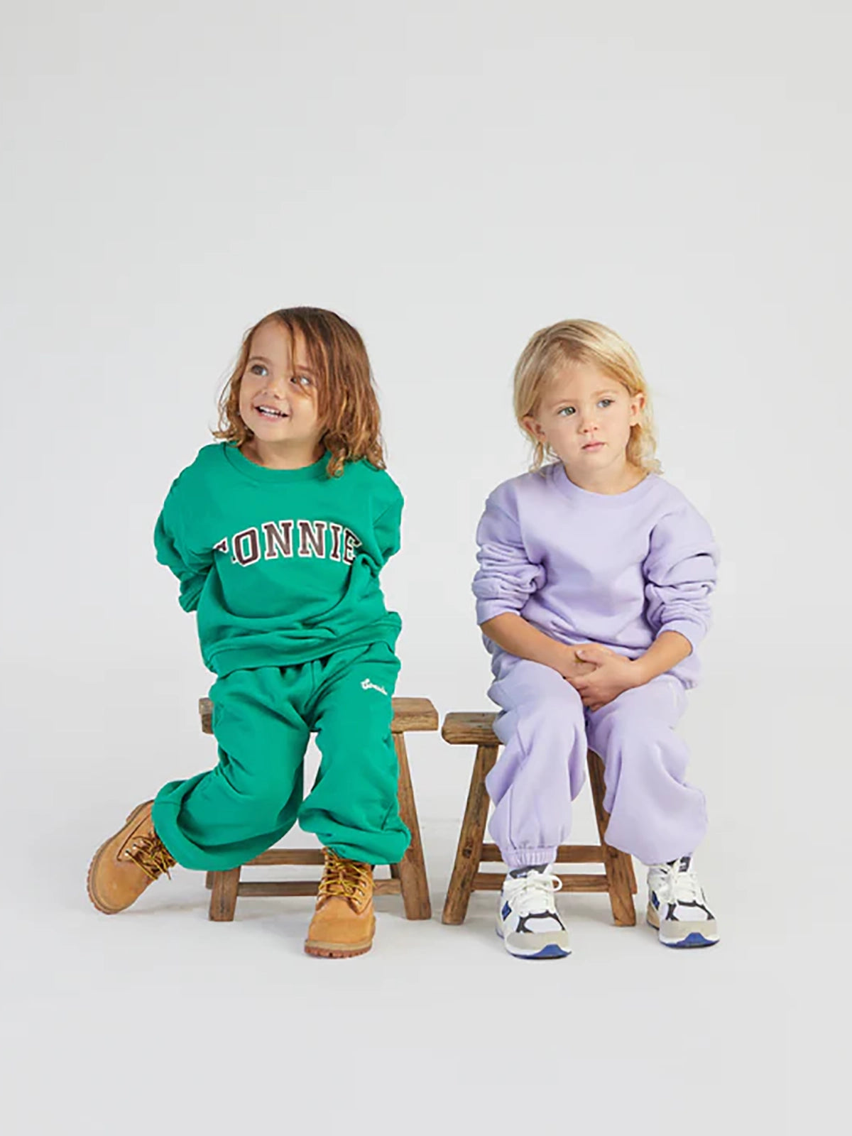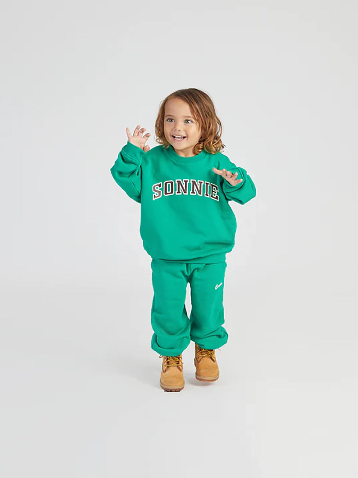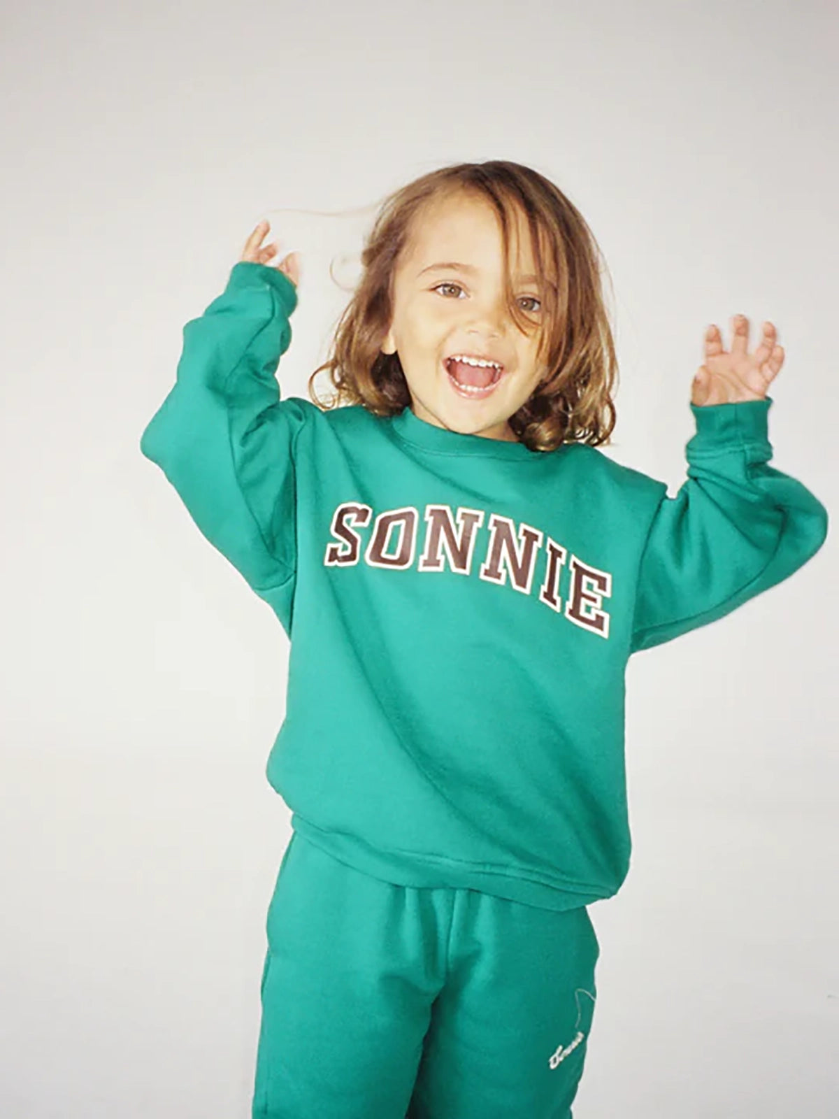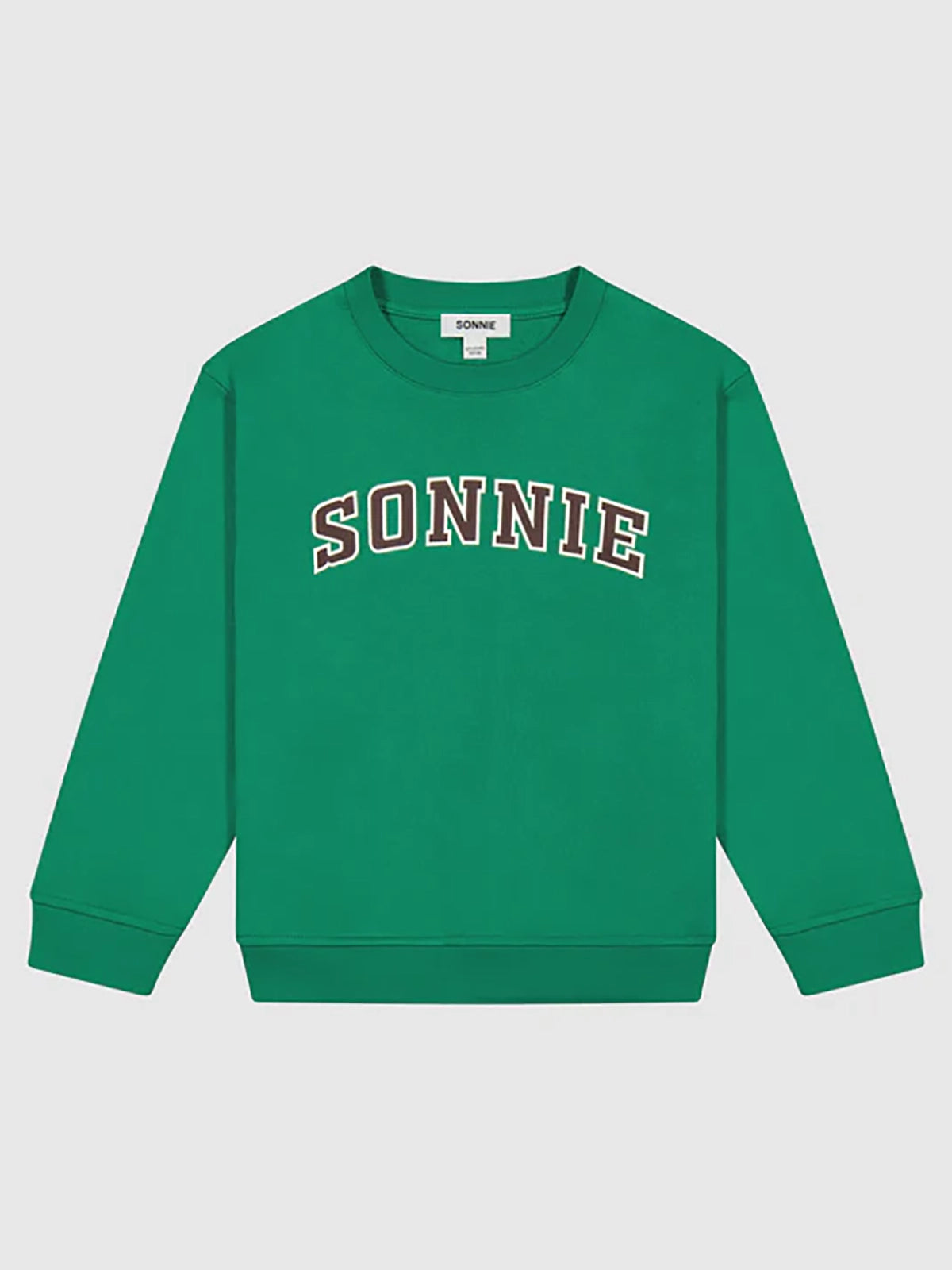 A classic crewneck sweatshirt cut in a mid-weight 100% cotton French terry. Ribbed cuff and hem detailing with Sonnie varsity chest print.