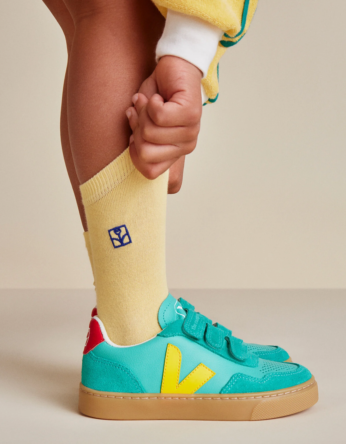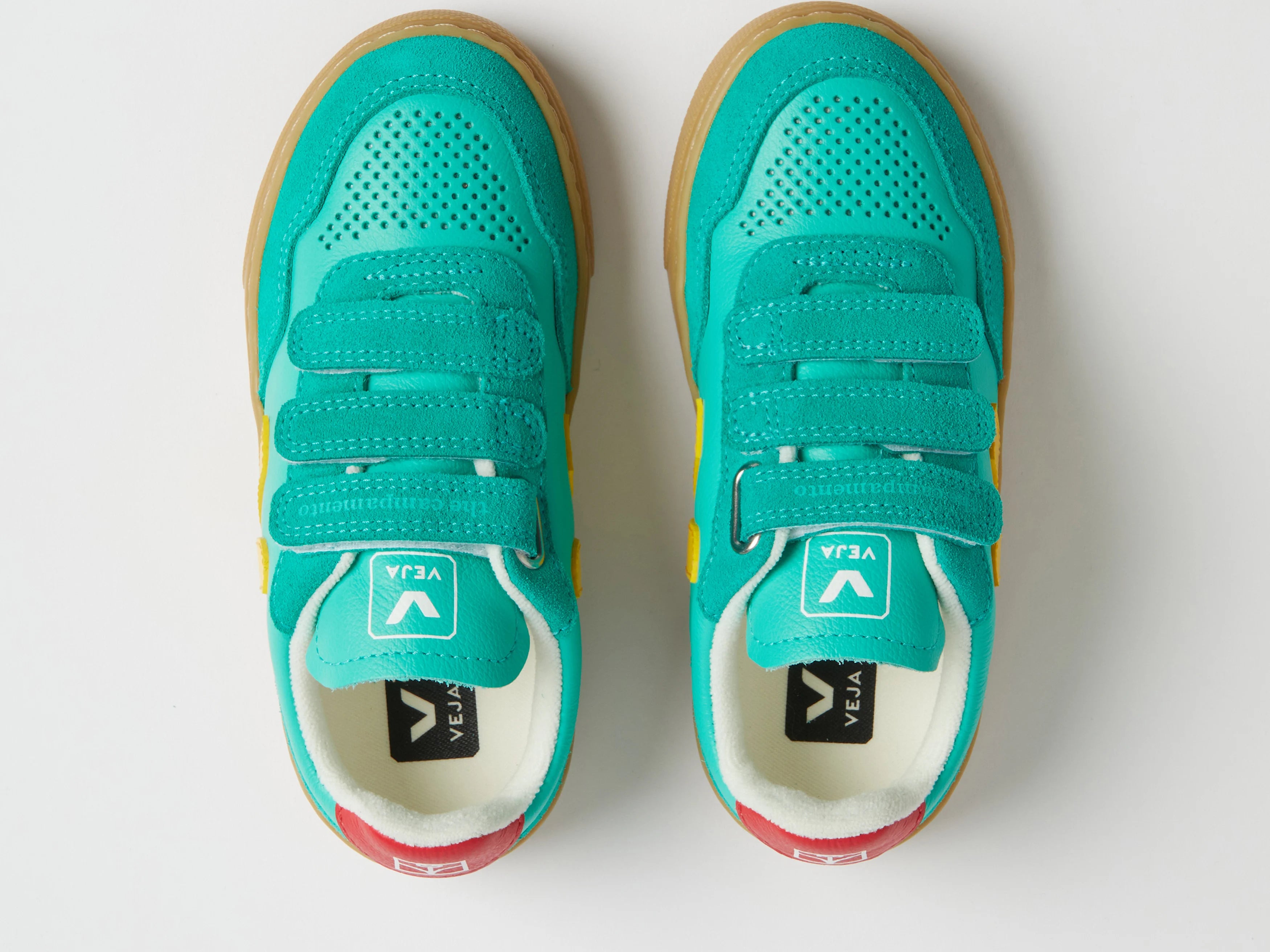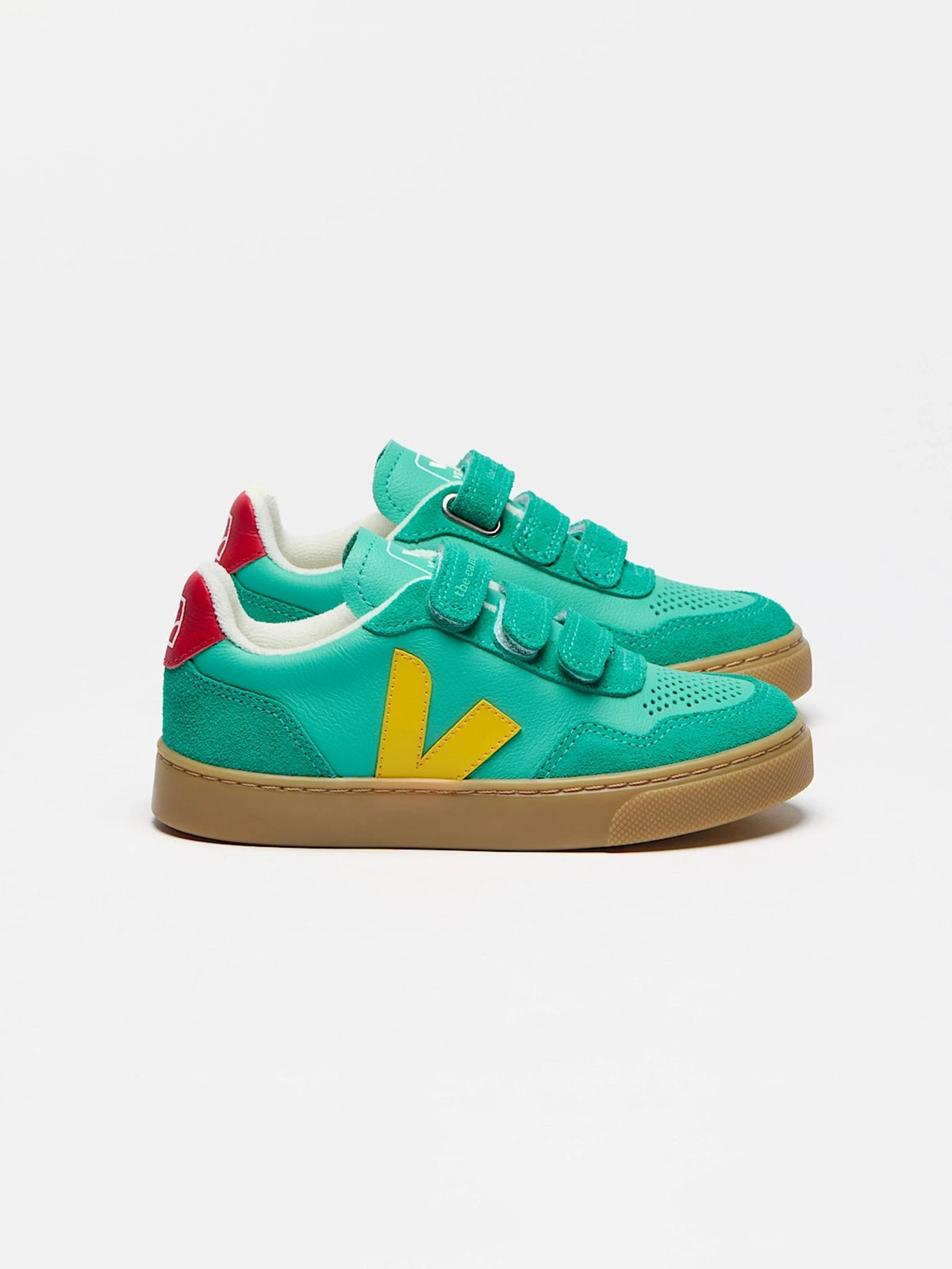 Bright colours for the little ones thanks to VEJA's collaboration with The Campamento . Discover the V-90 Small, specially designed for children. With its cool style, both retro and modern, the V-90 Small combines the athletic fashion of the 90s with fresh touches.