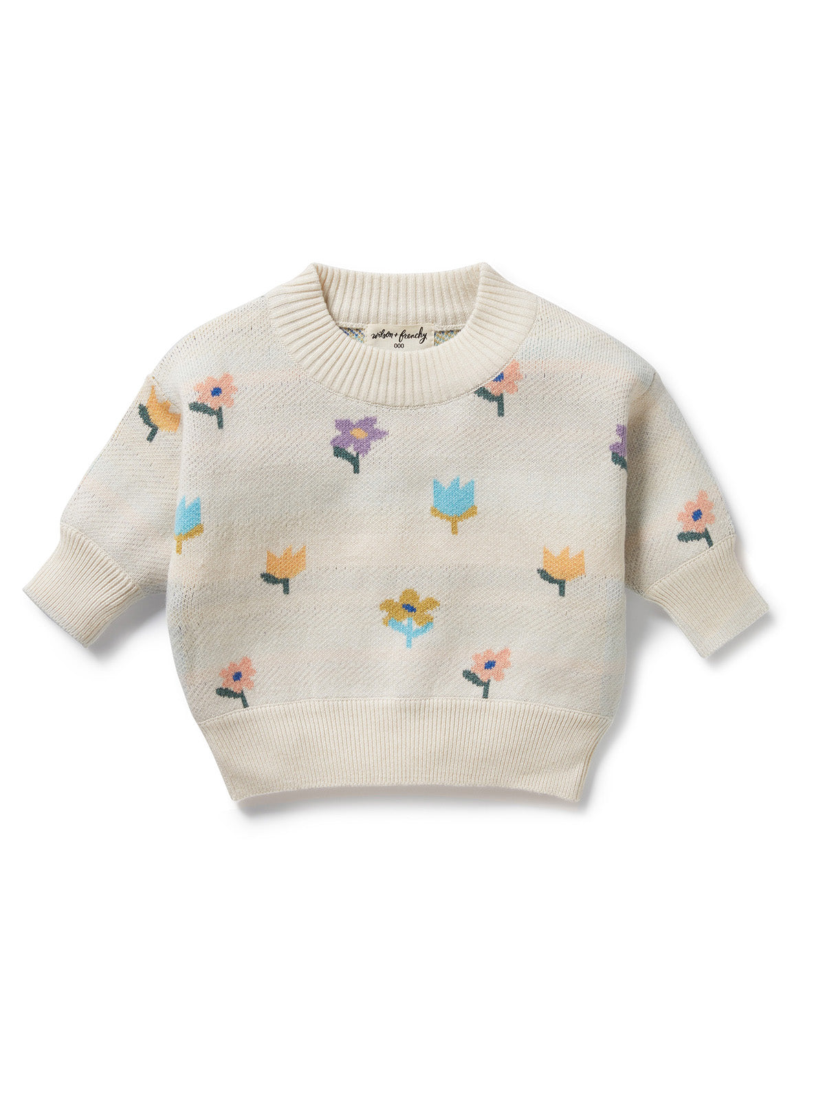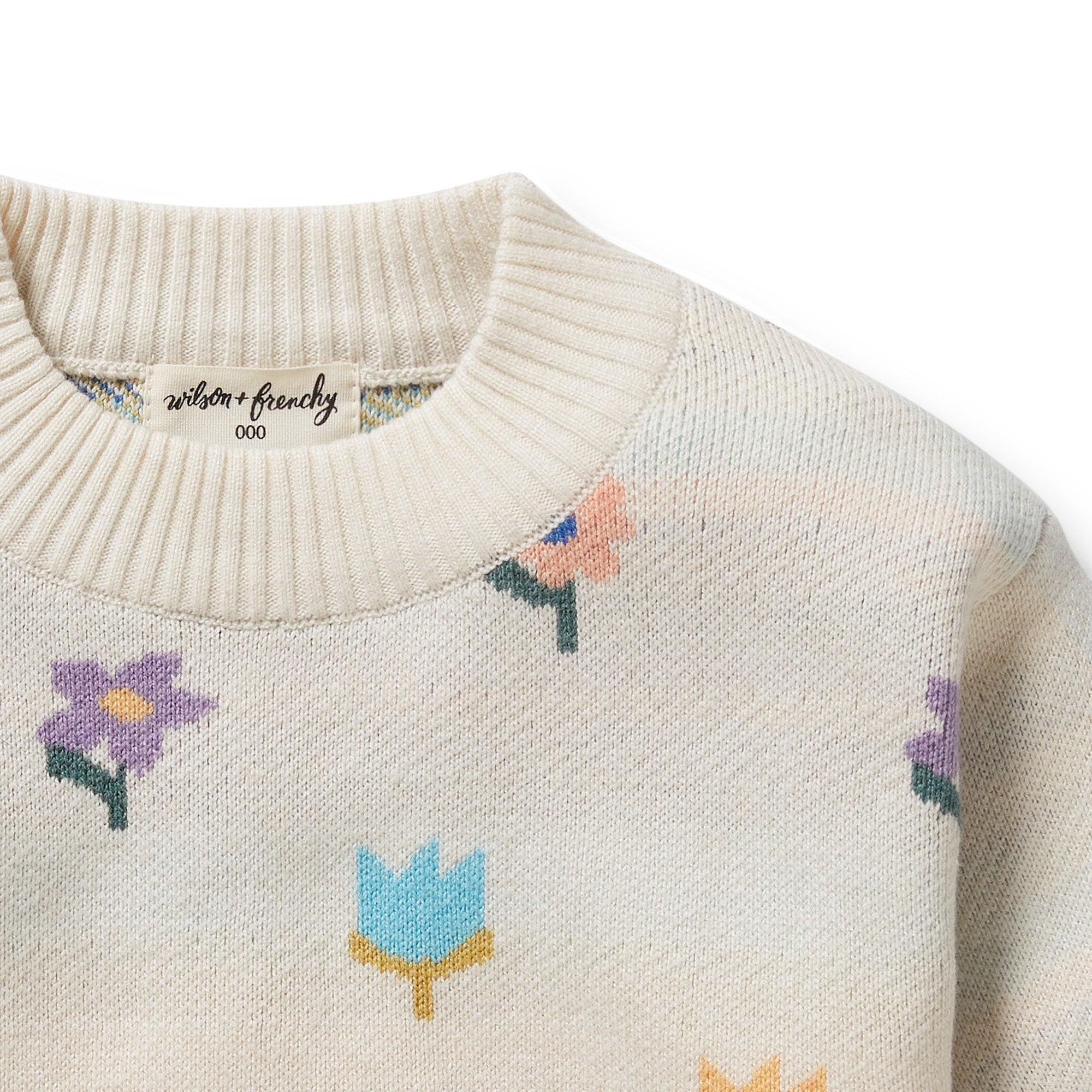 WILSON & FRENCHY Organic Knitted Jacquard Jumper - Flower Pop