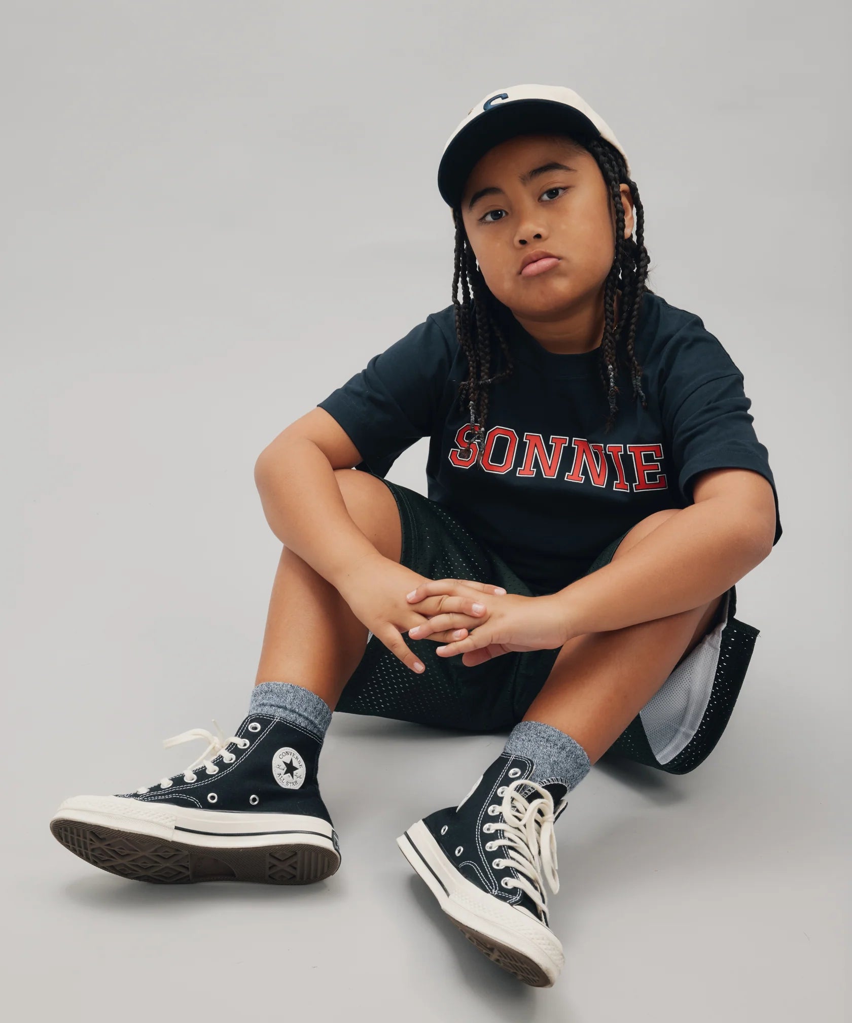 A relaxed fit t-shirt with the SONNIE varsity print on the chest and cut in 100% GOTS certified organic cotton.