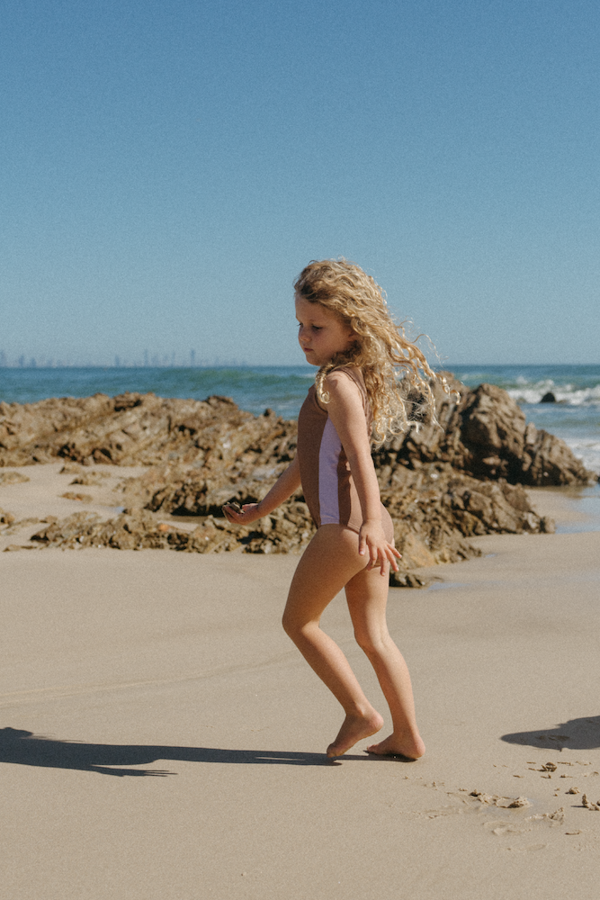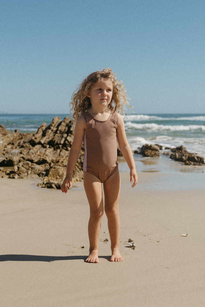 GROWN swim collection's adorable One Piece in Toffee.
