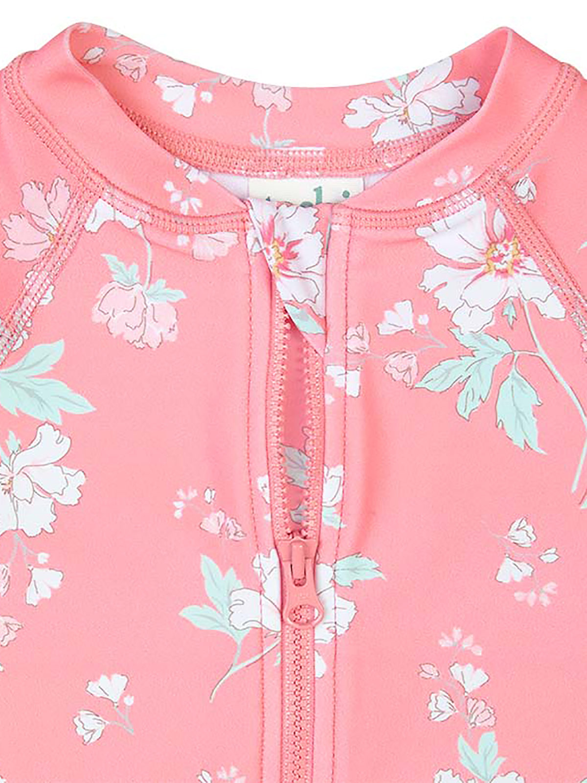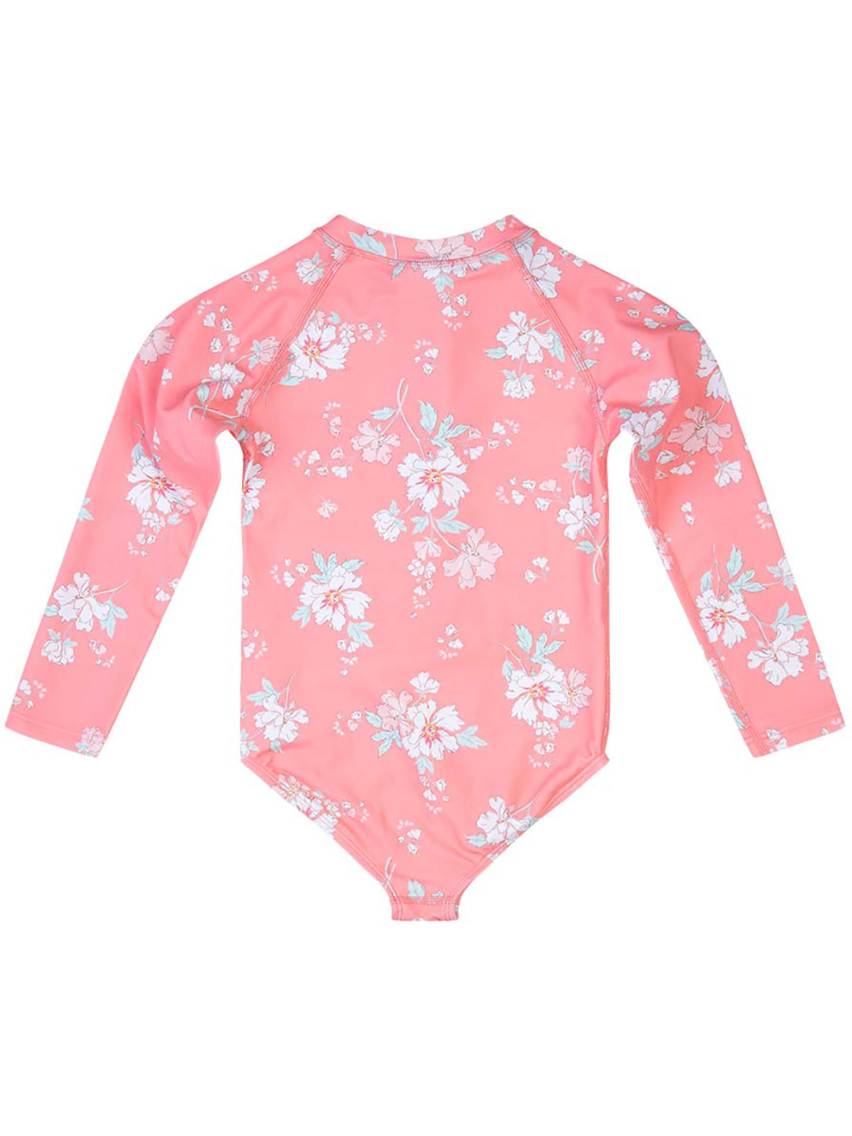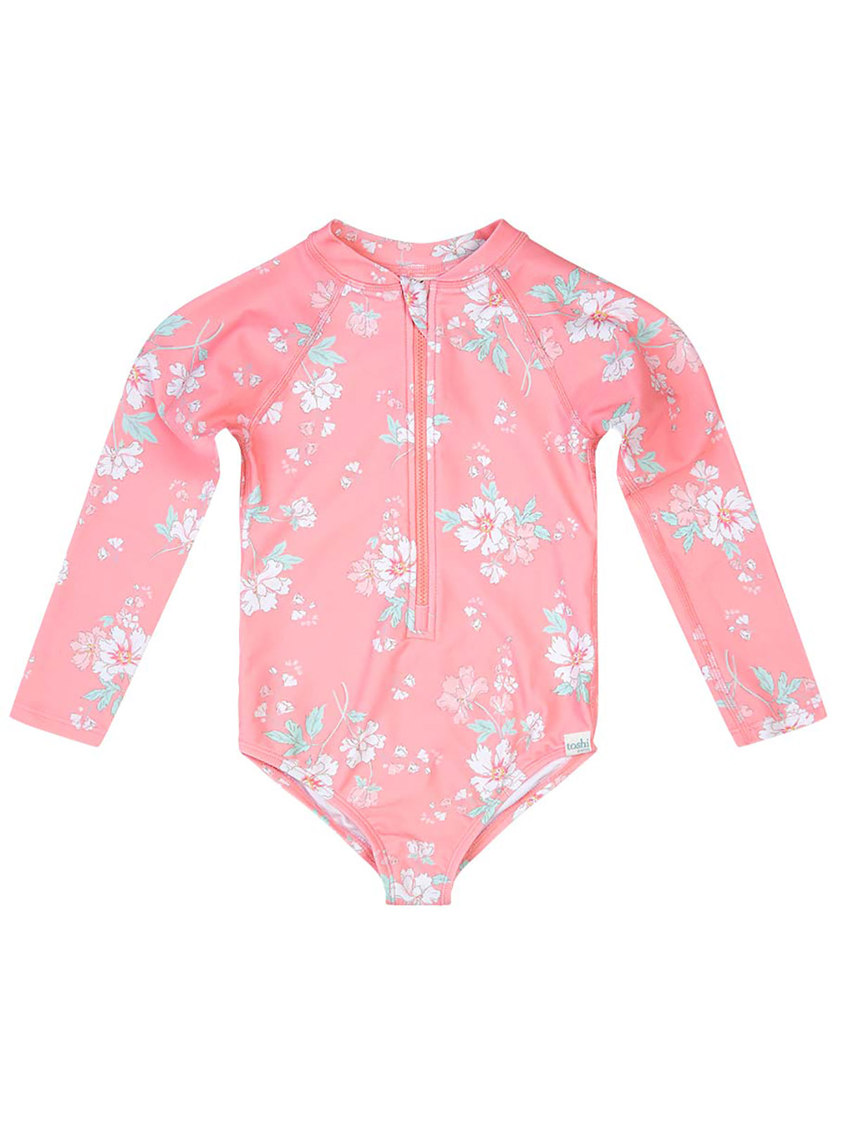 Toshi Swim offers maximised sun protection and water safety. The finest quality Nylon fabrication is fast drying, chlorine and salt water friendly. A high neckline and long sleeves ensure greater sun protection. This Toshi seamless Swim Bodysuit features a back opening zip for ease of dressing.Â
