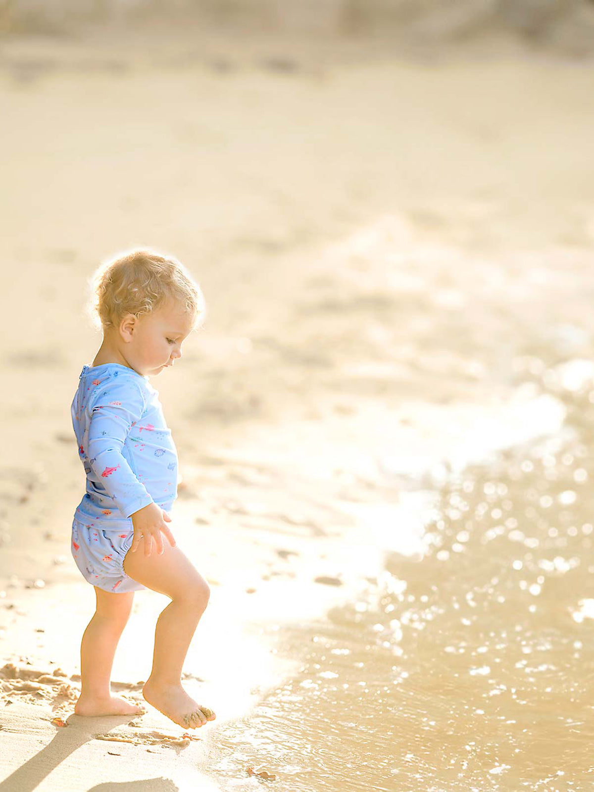Rated UPF50+, Toshi Swim offers maximised sun protection and water safety. The finest quality fabrication is fast drying, chlorine and salt water friendly.Â