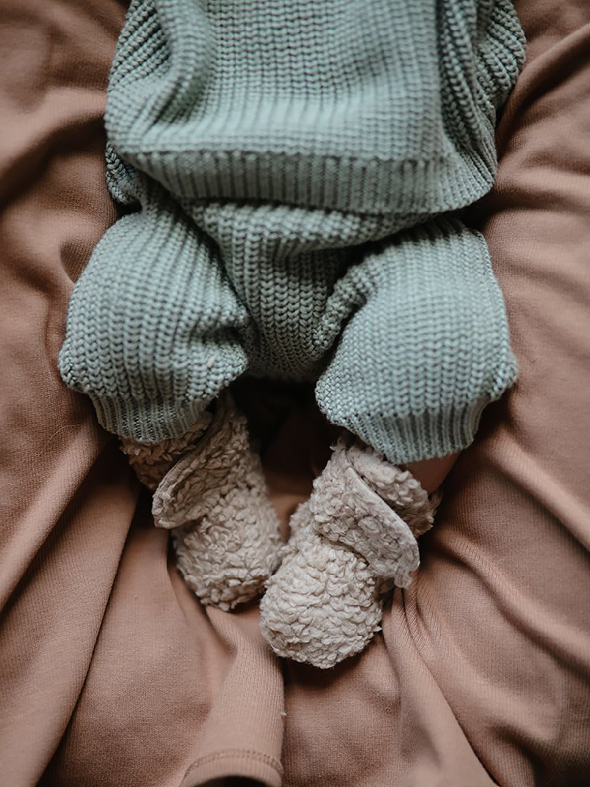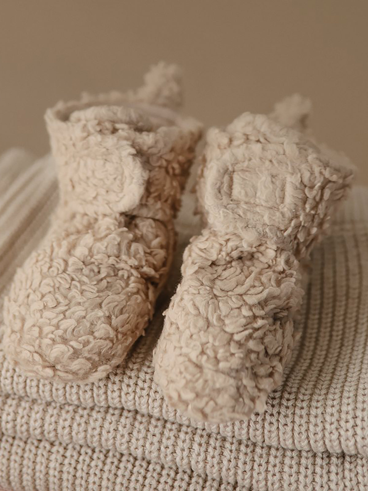 Keep little feet warm with our cozy baby booties designed with safety and comfort in mind. Featuring 100% organic sherpa cotton, booties will stay on baby with the secure closure. The soft jersey cotton lining keeps little toes warm during cooler seasons as babies move from first moments to first steps.