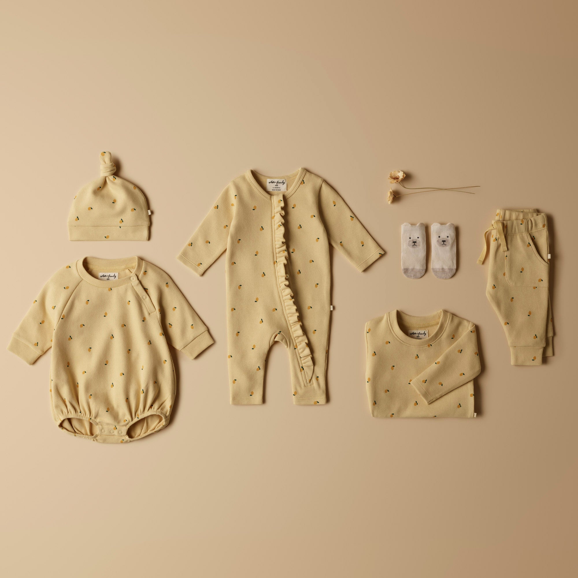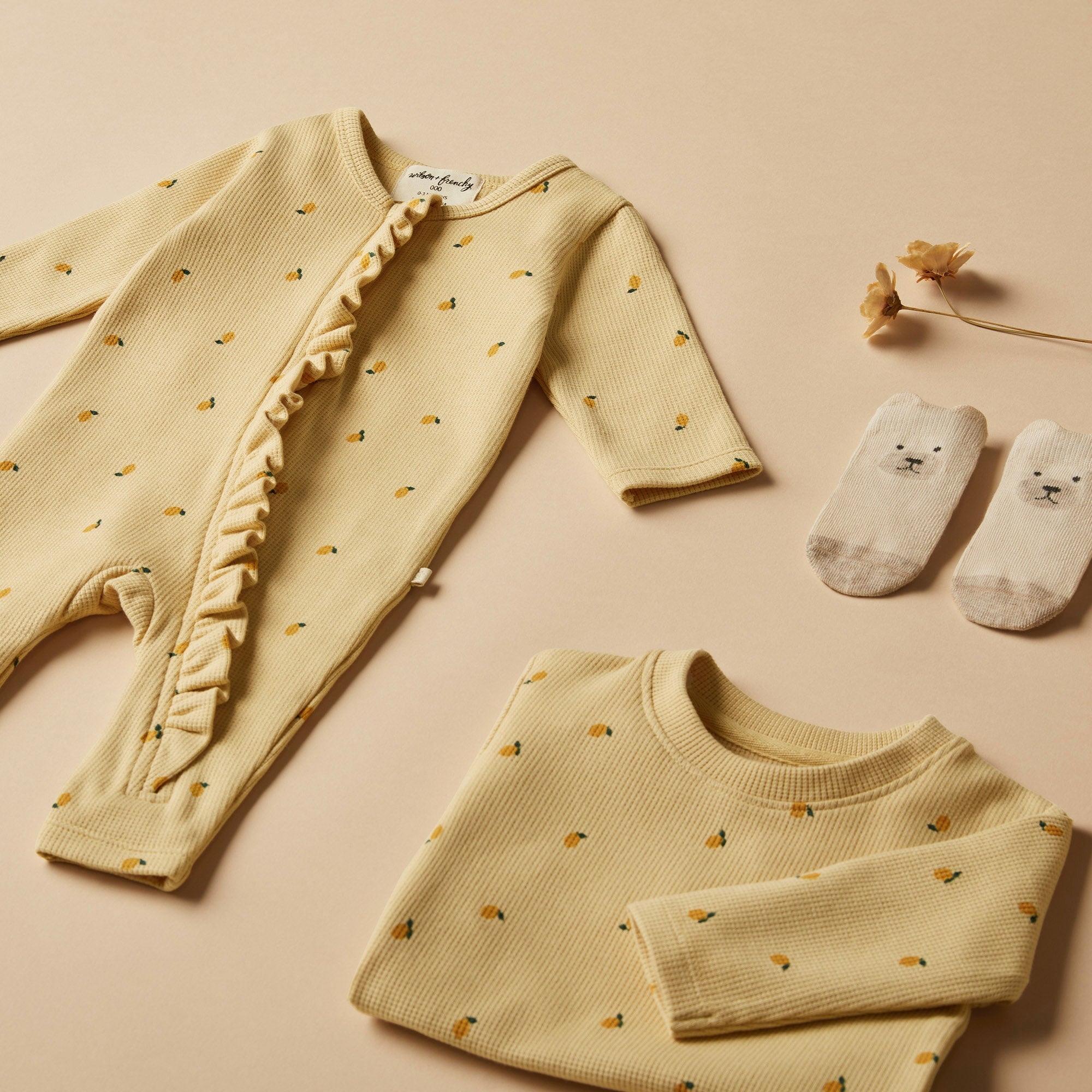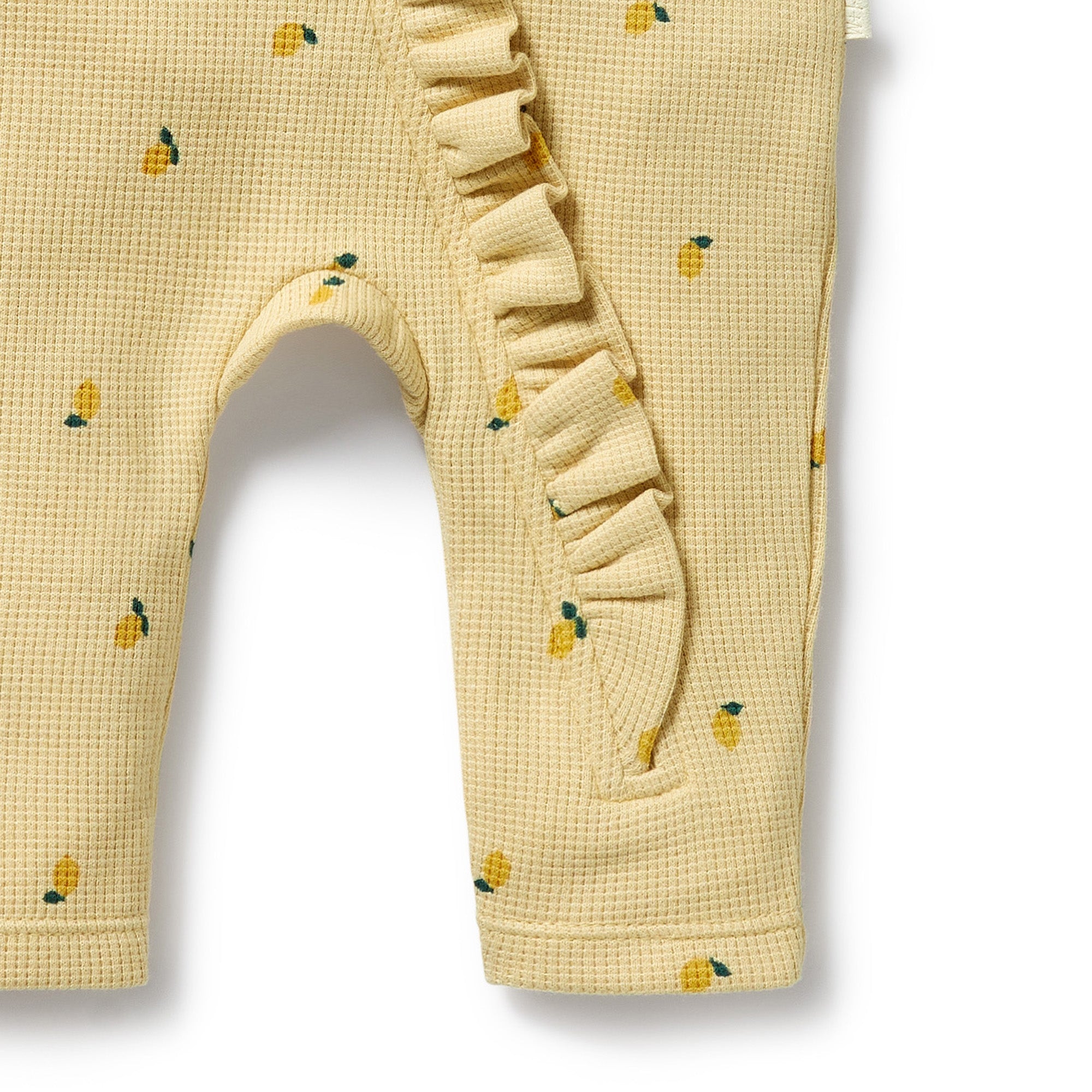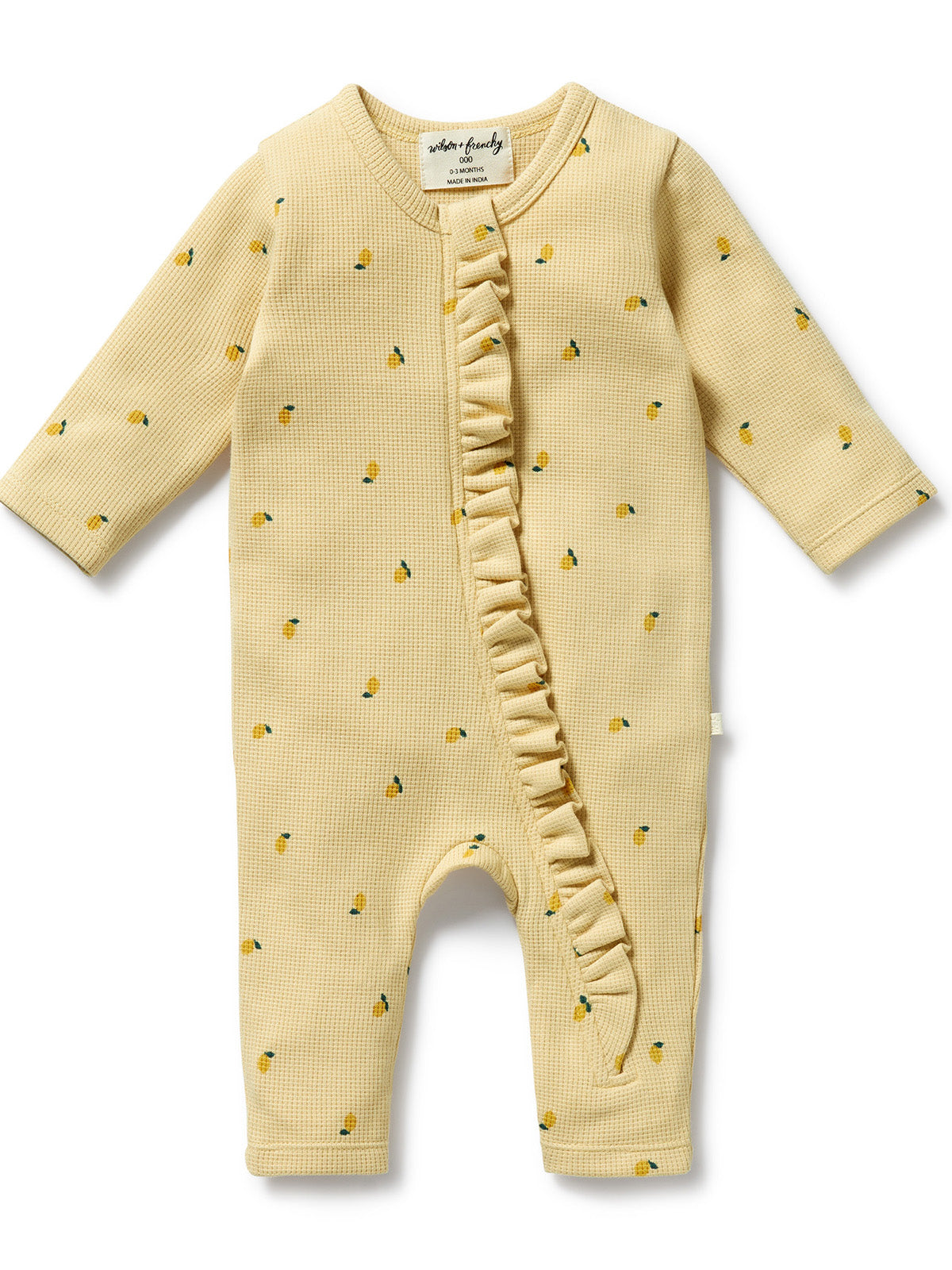 WILSON & FRENCHY Organic Waffle Ruffle Zipsuit - Little Lemon