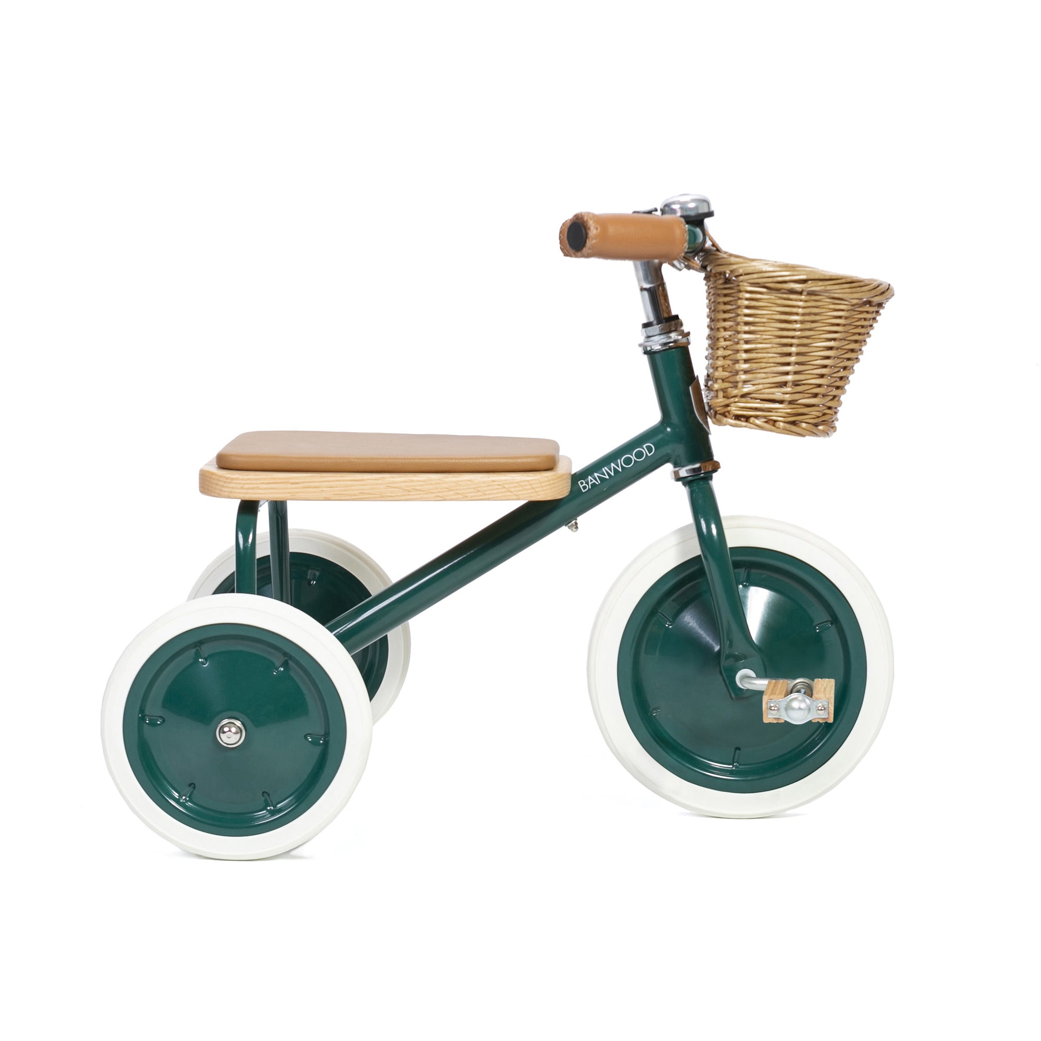 This green tricycle for kids is built out of sturdy materials. The grips are made of vegan leather, easy to wipe off and the pedals and seat are made of oak wood with soft padding for a comfy ride. The little one can bring along their favourite teddy bear or toys in the front wicker basket.
